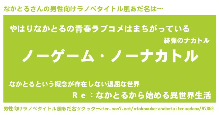 | ヘコむあだ名 | 『なまこ酢』『なかとる(小並感)』 |