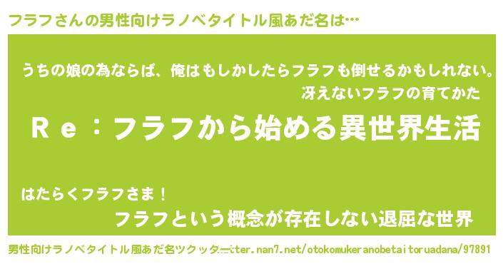 | 女子向けラノベタイトル風あだ名 | 『闇のフラフ』『フラフの婚約者』 |
