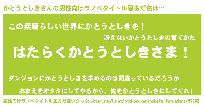 | 意味不明あだ名 | 『住所不定無職かとうとしき(91歳)』 |