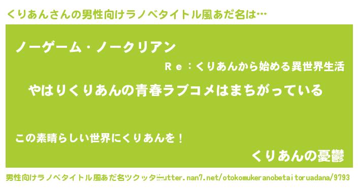 | 意味不明あだ名 | 『くりあんフォーエバー』『自称くりあん』 |
