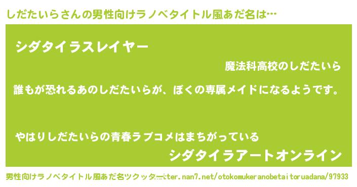 | 意味不明あだ名 | 『永久保存しだたいら』『自称しだたいら』 |