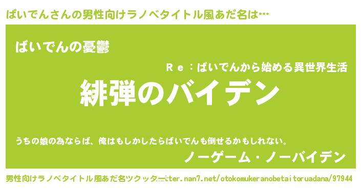 | 胡散臭い通販商品みたいなあだ名 | 『必ず成功する霊験あらたかなお札…その名も「ばいでん」』 |
