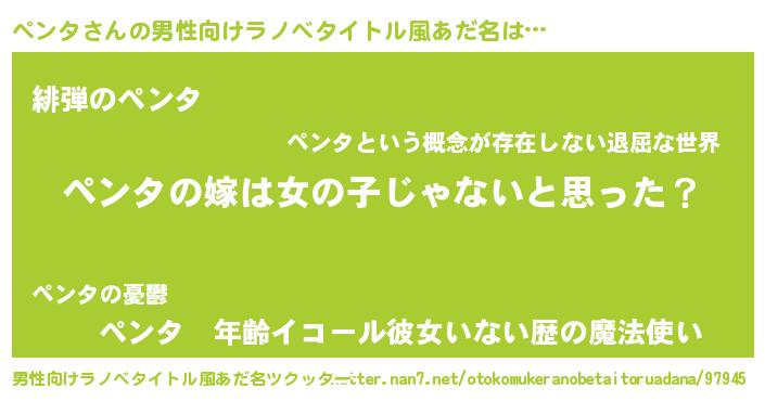 | 意味不明あだ名 | 『とにかく怪しいペンタ』『自称ペンタ』 |