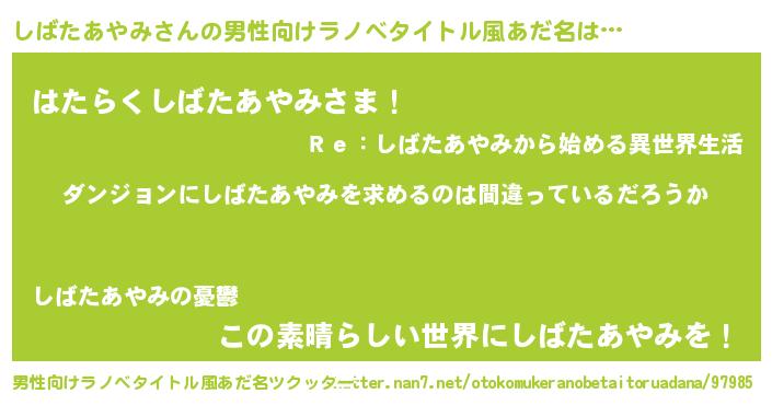 | 女子向けラノベタイトル風あだ名 | 『しばたあやみは平凡を望む』 |