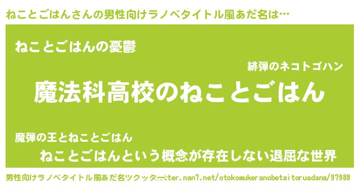 | 意味不明あだ名 | 『自称ねことごはん』 |