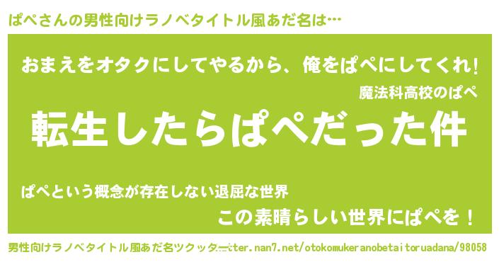 | ヘコむあだ名 | 『ぱぺ(笑)』『ぱぺっふぃ~』 |