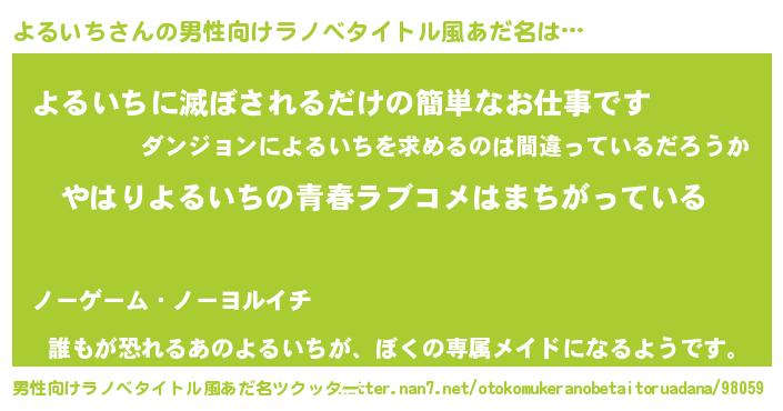 | ファンタジー風あだ名 | 『エターナルヨルイチー』『クインヨット』 |