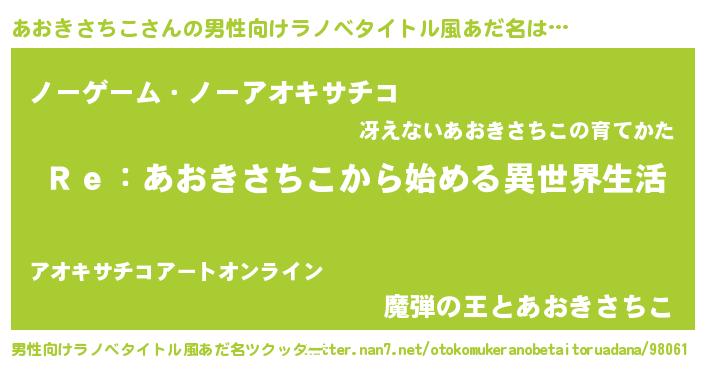 | 欧米人風あだ名 | 『ケンブリッジあおきさちこ』 |