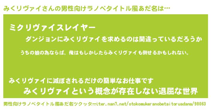 | 女子向けラノベタイトル風あだ名 | 『みくリヴァイの婚約者』 |