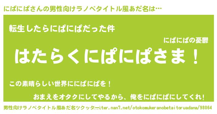 | 欧米人風あだ名 | 『アンジェラ・にぱにぱ』 |