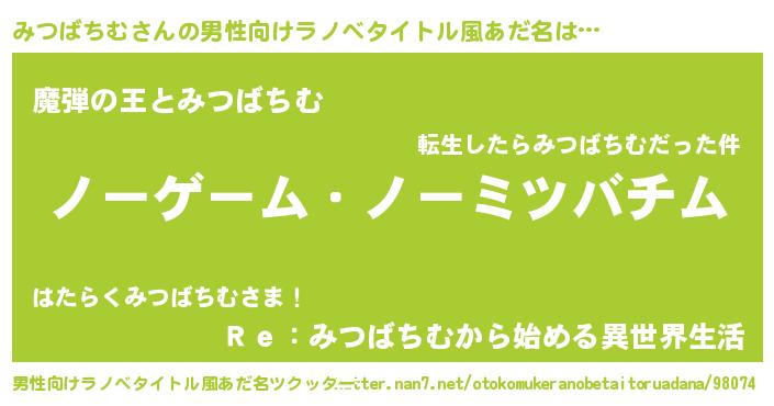 | 伝説のあだ名 | 『救世主となる錬金術士みつばちむ』 |