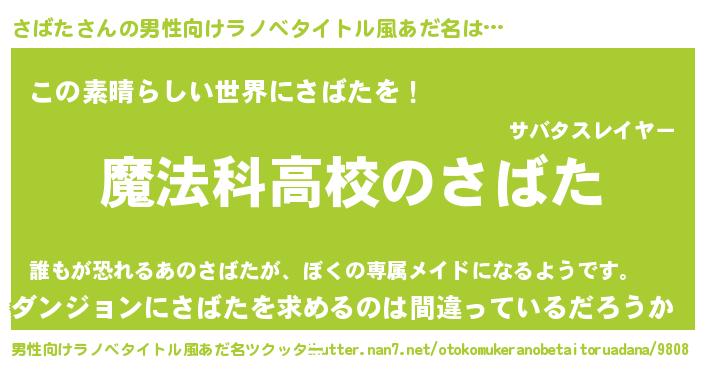 | ヒーロー風カッコイイあだ名 | 『サイバー戦士サバタ』『仮面サバダー』 |