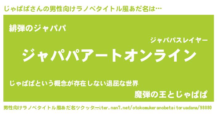 | 意味不明あだ名 | 『ペロリンじゃぱぱ』『永久保存じゃぱぱ』 |