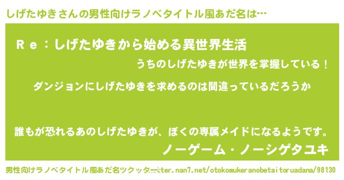 | 女子向けラノベタイトル風あだ名 | 『しげたゆきは平凡を望む』 |