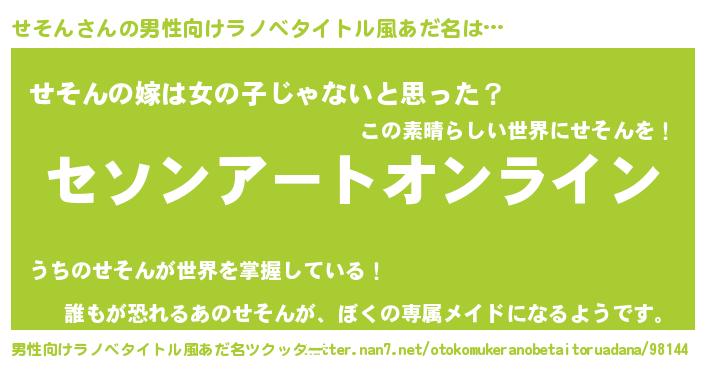 せそんさんの男性向けラノベタイトル風あだ名をツクッター!