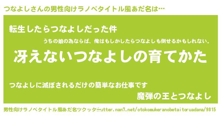 | ヒーロー風カッコイイあだ名 | 『仮面ツナダー』『ウルトラつなよしマン』 |