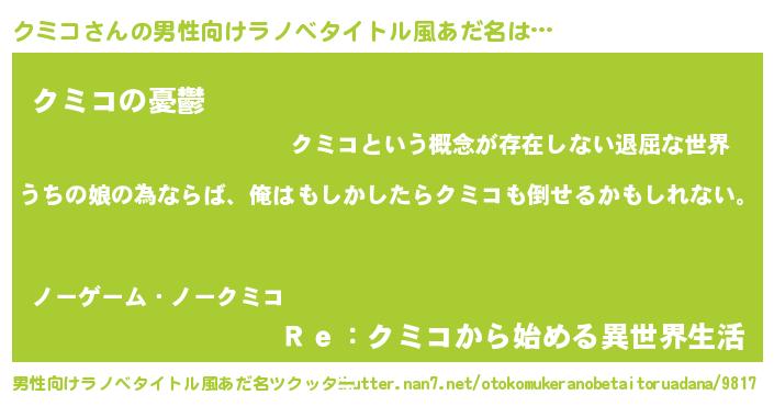 | ファンタジー風あだ名 | 『エターナルクミコー』『クミフェル』 |