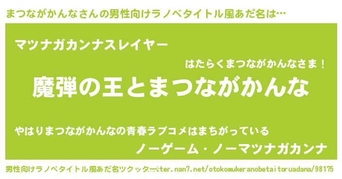 | 女子向けラノベタイトル風あだ名 | 『乙女ゲームの破滅フラグしかない悪役まつながかんなに転生してしまった…』 |