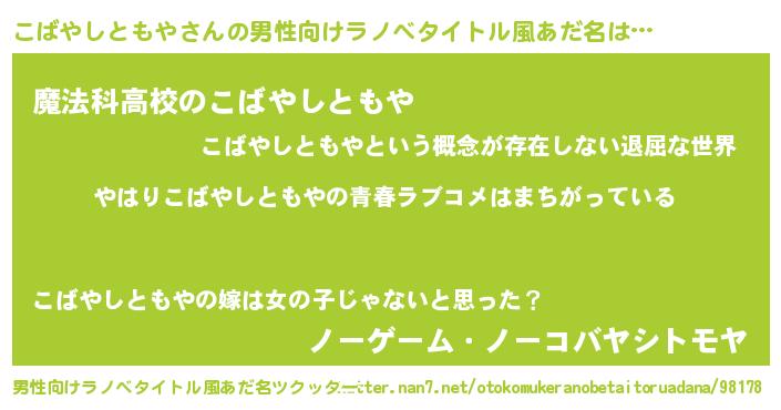 | ファンタジー風あだ名 | 『エターナルコバヤシトモヤー』 |