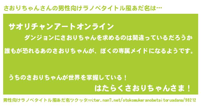 | 伝説のあだ名 | 『古文書に記された勇者さおりちゃん』 |