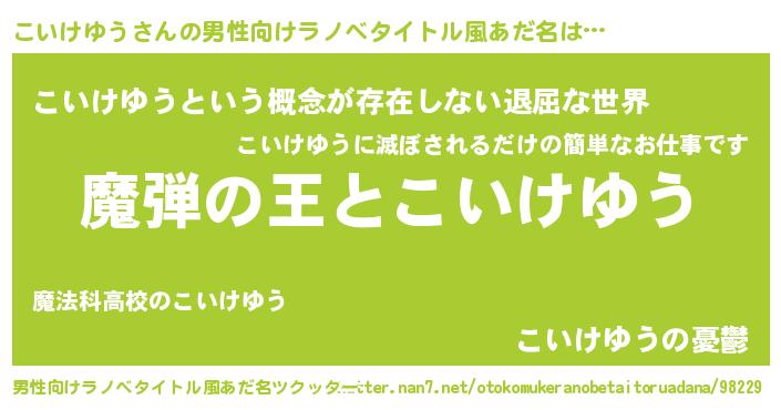 | ヒーロー風カッコイイあだ名 | 『仮面コイダー』『ネオコイケユウ』 |