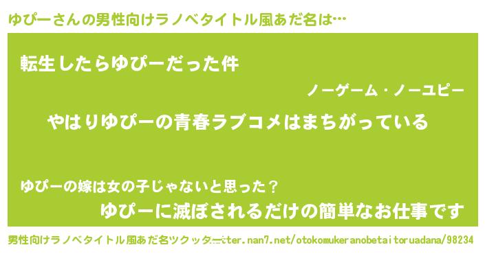 | ヒーロー風カッコイイあだ名 | 『ウルトラゆぴーマン』『愛の使者ゆぴー』 |