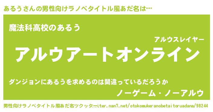 | 胡散臭い通販商品みたいなあだ名 | 『モテモテ間違いなしブレスレット…その名も「あるう」』 |