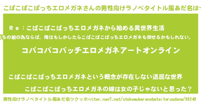 こばこばこばっちエロメガネさんの男性向けラノベタイトル風あだ名をツクッター!