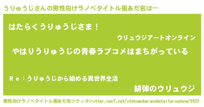 | ファンタジー風あだ名 | 『エターナルウリュウジー』『ウリフェル』 |