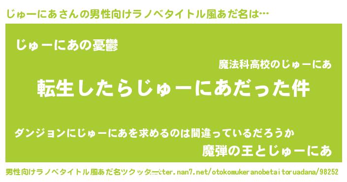 | 胡散臭い通販商品みたいなあだ名 | 『モテモテ間違いなし水晶球…その名も「じゅーにあ」』 |