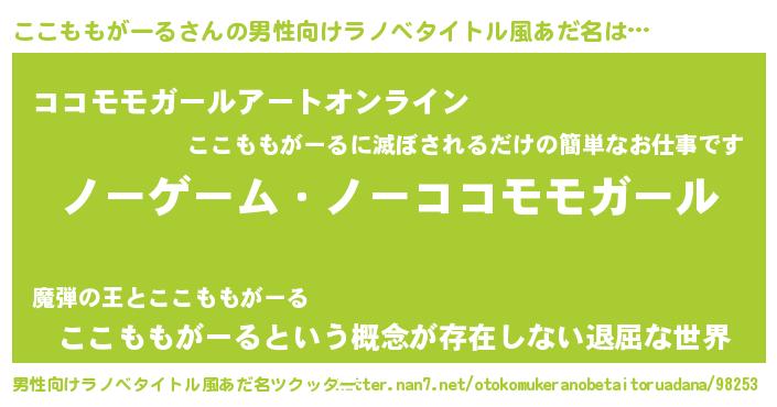 | 伝説のあだ名 | 『救世主となる占い師ここももがーる』 |