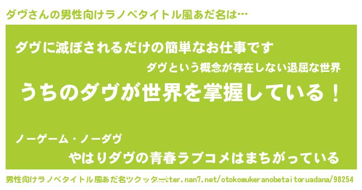 | ヒーロー風カッコイイあだ名 | 『ウルトラダヴマン』『ネオダヴ』 |