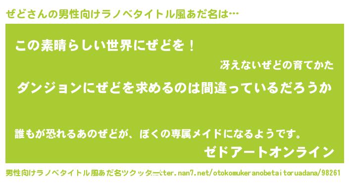 | 女子向けラノベタイトル風あだ名 | 『ぜどは平凡を望む』『ぜどの契約王妃』 |