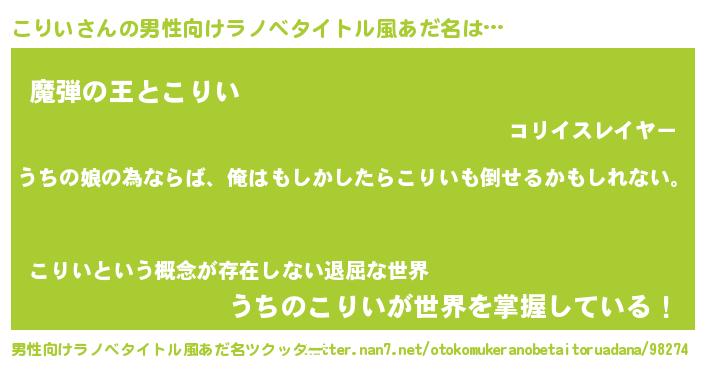 | 胡散臭い通販商品みたいなあだ名 | 『運命の人と巡り会える高級そうな壺…その名も「こりい」』 |