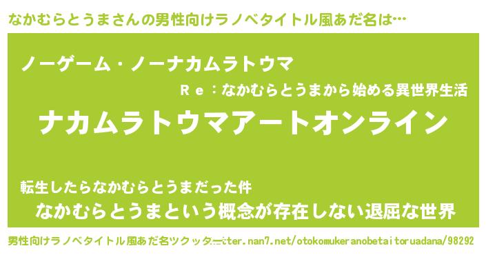 | ヒーロー風カッコイイあだ名 | 『スーパーナカムラトウマ』 |
