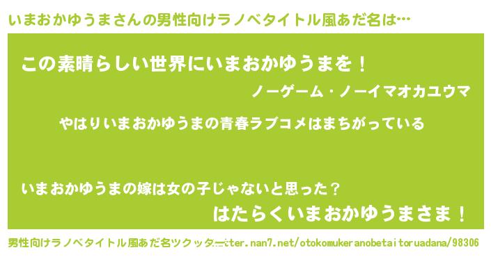 | 欧米人風あだ名 | 『いまおかゆうまクリステル』 |
