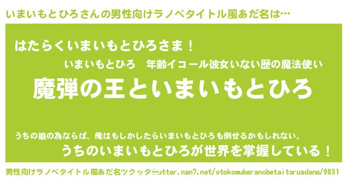 いまいもとひろさんの男性向けラノベタイトル風あだ名をツクッター!