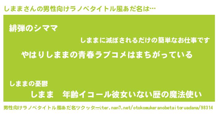 | 女子向けラノベタイトル風あだ名 | 『しままの雑貨屋さん』 |