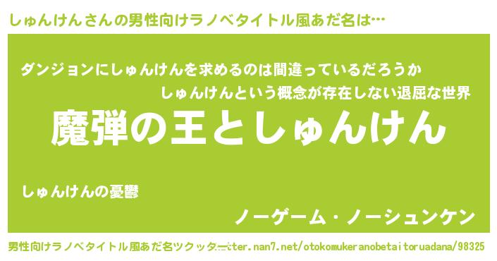 | 意味不明あだ名 | 『住所不定無職しゅんけん(68歳)』 |