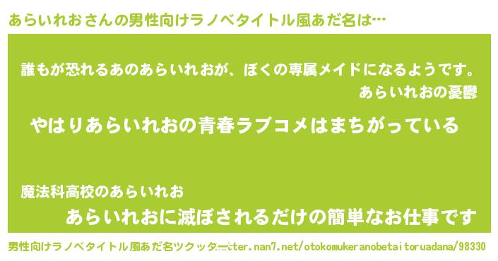 | 女子向けラノベタイトル風あだ名 | 『あらいれお伯爵の花嫁』 |