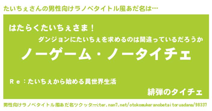 | 伝説のあだ名 | 『救世主となる技術者たいちぇ』 |