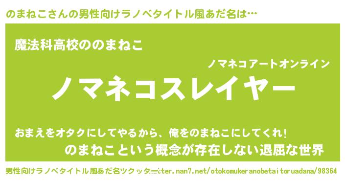 | ヘコむあだ名 | 『のまねこ(震え声)』『のまもー』 |