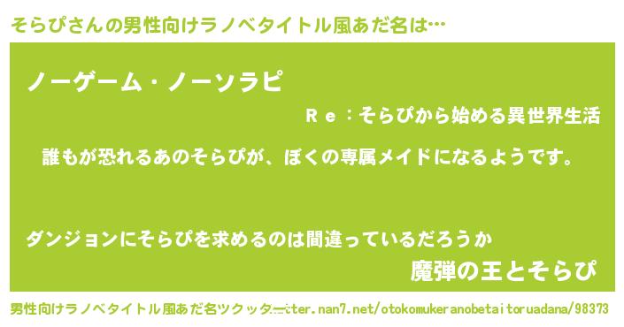 | 意味不明あだ名 | 『永久保存そらぴ』『自称そらぴ』 |