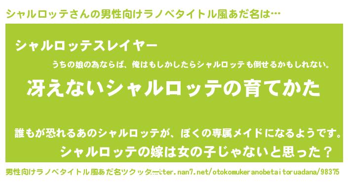| 女子向けラノベタイトル風あだ名 | 『男装シャルロッテの憂鬱な任務』 |