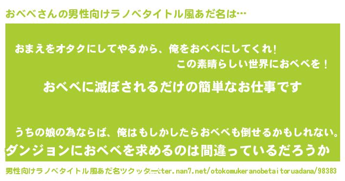 | ヘコむあだ名 | 『おべお』『豆乳』『おべべ(爆)』 |