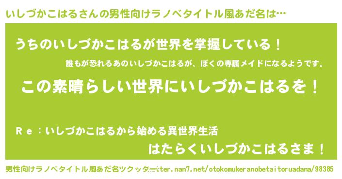 | 女子向けラノベタイトル風あだ名 | 『悪役いしづかこはるに転生したようですが、知った事ではありません』 |