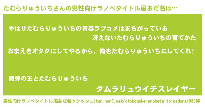 | ヒーロー風カッコイイあだ名 | 『正義の使者たむらりゅういち』 |