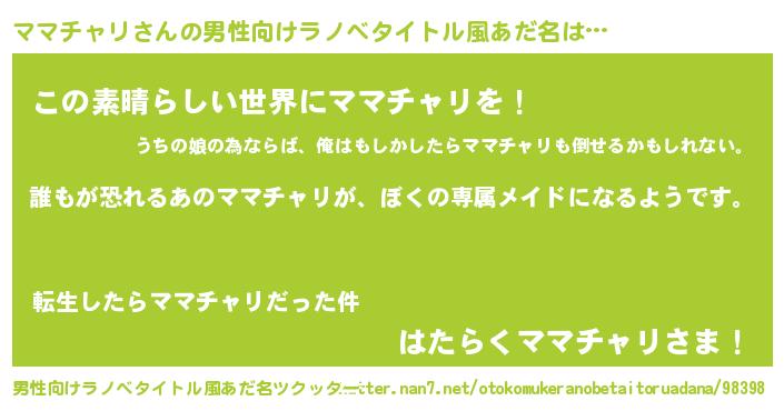 | 女子向けラノベタイトル風あだ名 | 『異世界でカフェママチャリを開店しました。』 |