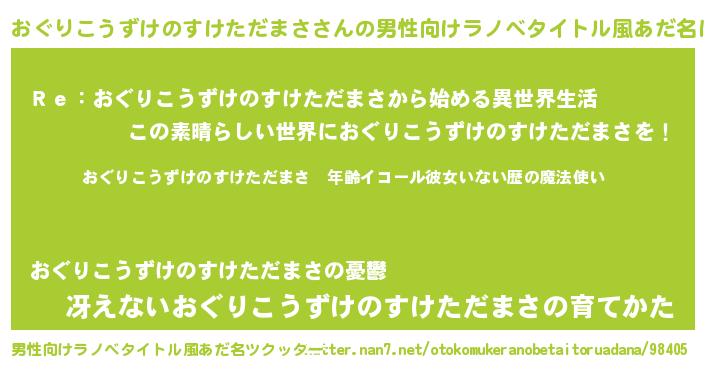 | 女子向けラノベタイトル風あだ名 | 『おぐりこうずけのすけただまさの玉の輿計画!』 |