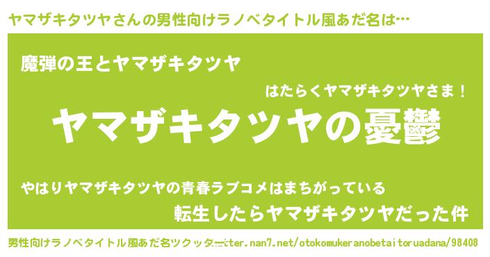 | 女子向けラノベタイトル風あだ名 | 『ヤマザキタツヤ姫と円卓の騎士』 |